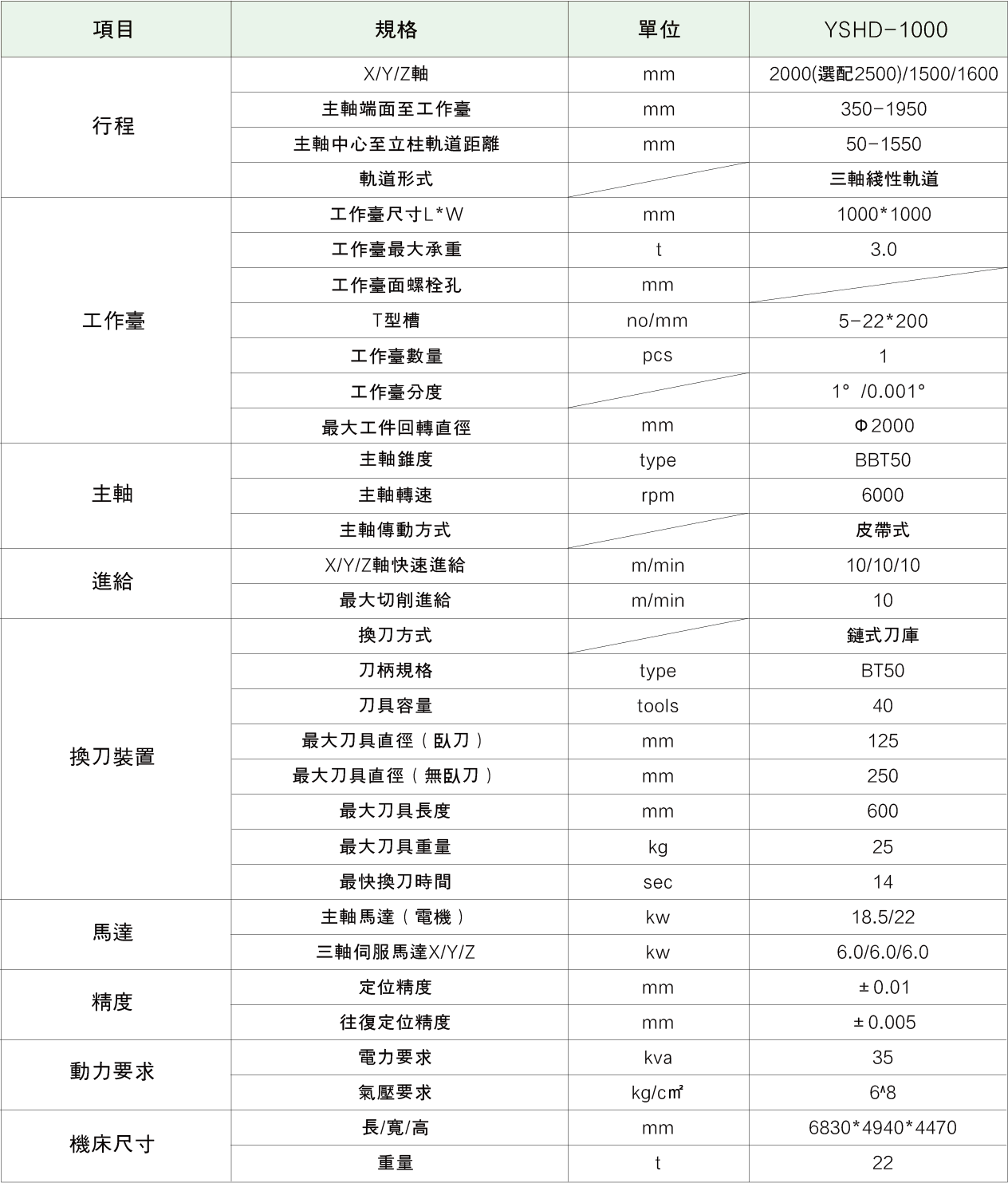 2.主軸電機標配βiIP30/8000 高扭矩廣義馬達電機。外徑達190mm高剛性臺灣主軸,主軸鼻端有獨特的迷宮裝置和迷宮吹氣裝置,有效保護主軸。主軸最高轉速可達6000rpm,兼具高剛性和高精度的特點;