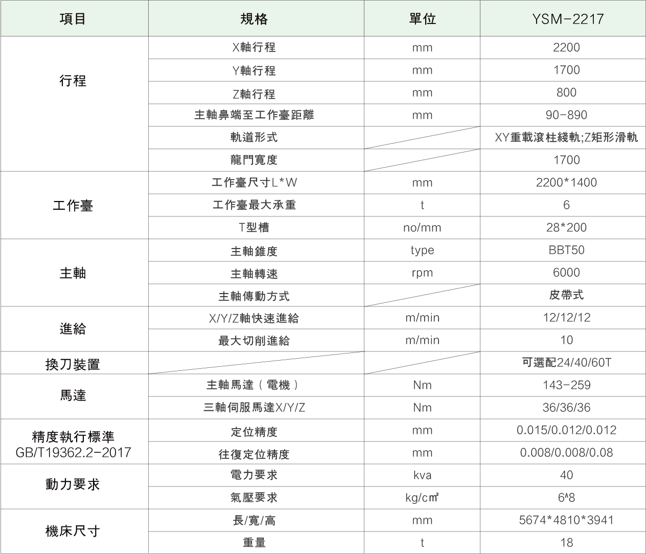 YSM-2217龍門式數控加工中心主要結構及技術特點