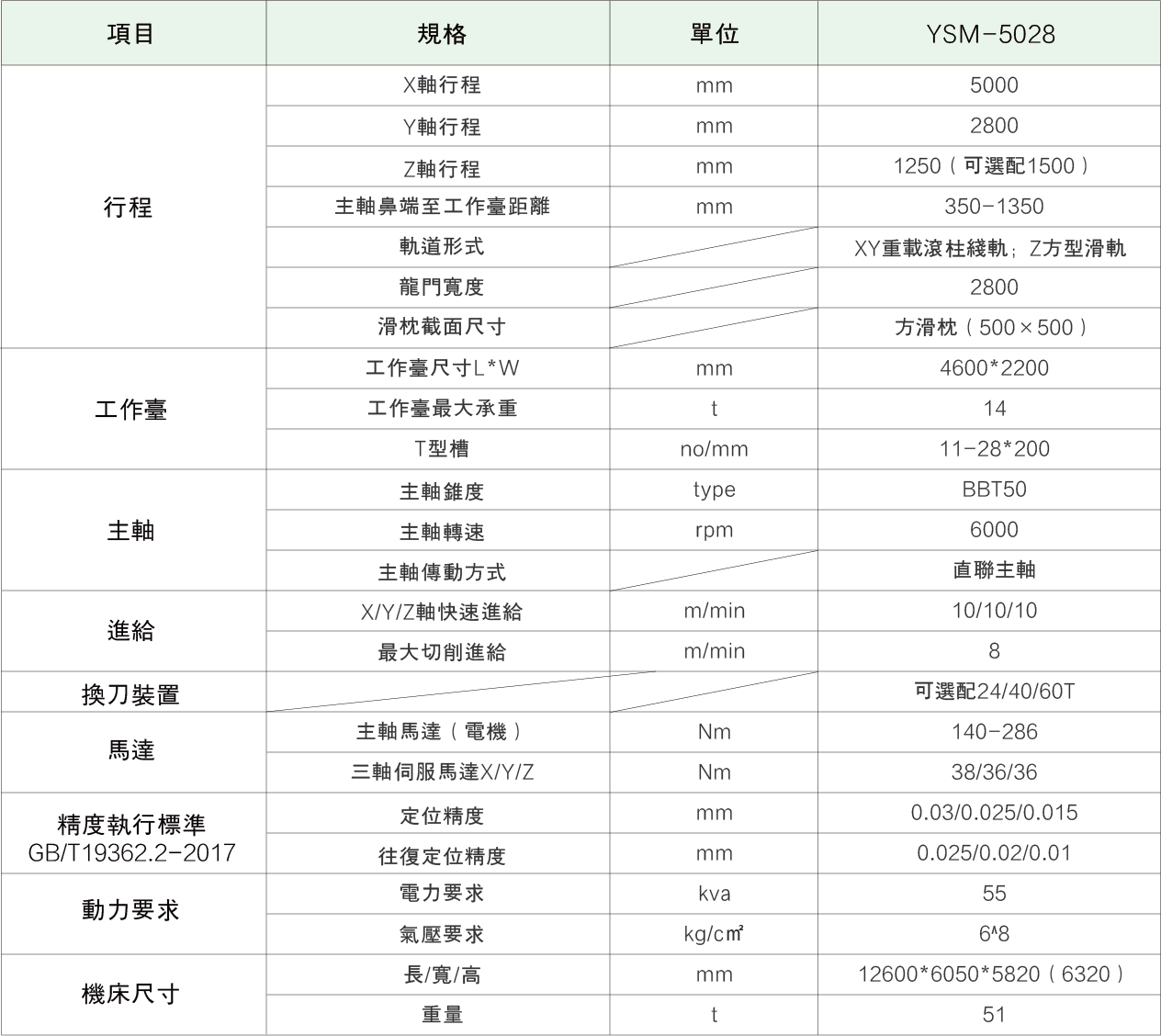 主軸采用大扭矩交流伺服電機驅動,主軸變速采用自動兩段高低檔變速箱。變速箱潤滑油溫采用獨立油冷裝置控製;主軸帶有自動拉刀裝置,液壓松開、碟簧拉緊,松、拉刀檢測,安全可靠;主軸采用BBT50高剛性主軸,超強切削力;