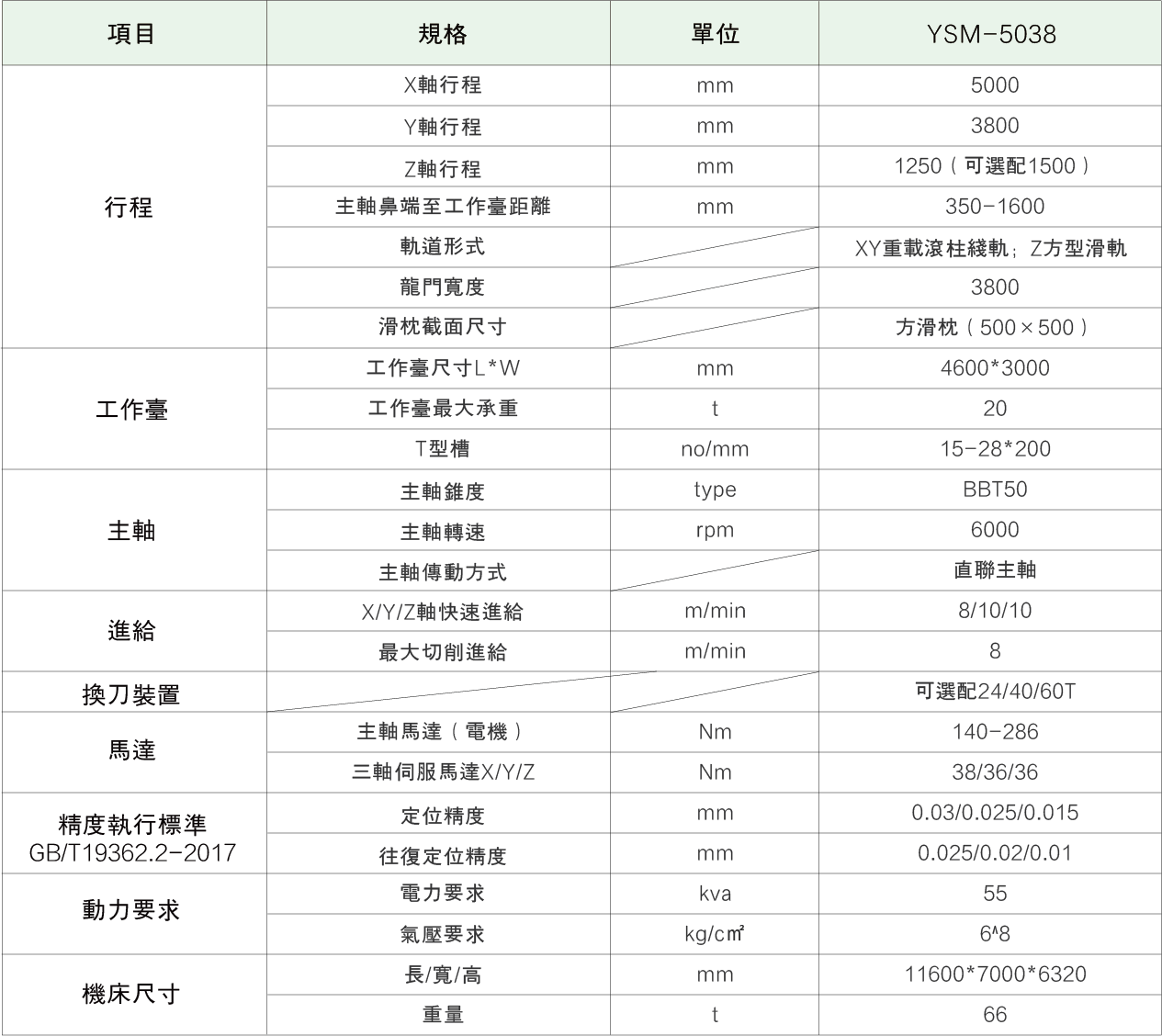 機床主軸及主軸箱結構主軸采用 22/26KW 大扭矩交流伺服電機驅動,主軸變速采用自動兩段高低檔變速箱。變速箱潤滑油溫采用獨立油冷裝置控製;主軸帶有自動拉刀裝置,液壓松開、碟簧拉緊,松、拉刀檢測,安全可靠;主軸采用 BBT50 高剛性主軸,超強切削力;
